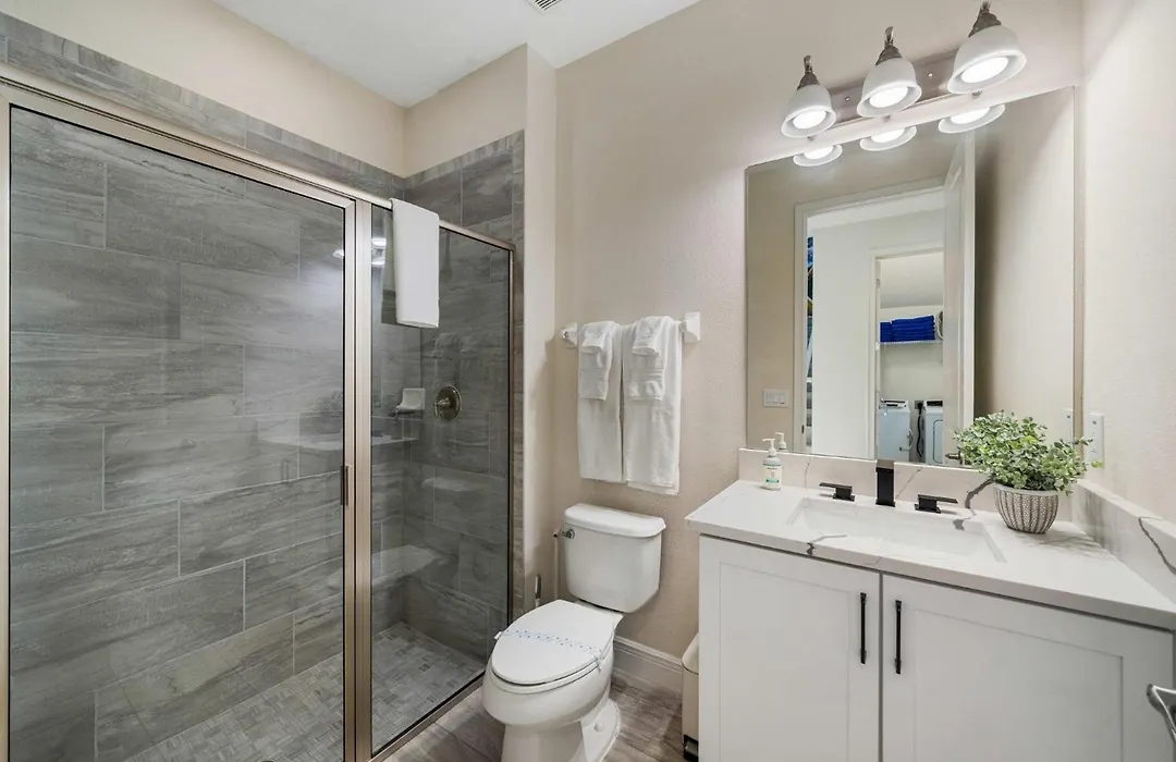Ec432 - The Heroes And Spells Haven villa comes with a bathroom with a shower and a washing machine.